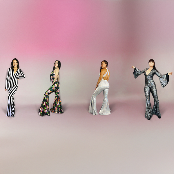 We offer a wide range of bell bottom jumpsuit styles, including sequin jumpsuits, classic disco-inspired designs, and unique costumes. We also offer bell bottom bodysuit options for a more streamlined look.