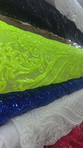 The purple floral sequin pattern sparkles beautifully under the light, creating a radiant glow on stage or in photos. Embroidered on sheer 4-way stretch sequin mesh Spandex, it moves gracefully with your body while maintaining a luxurious finish.