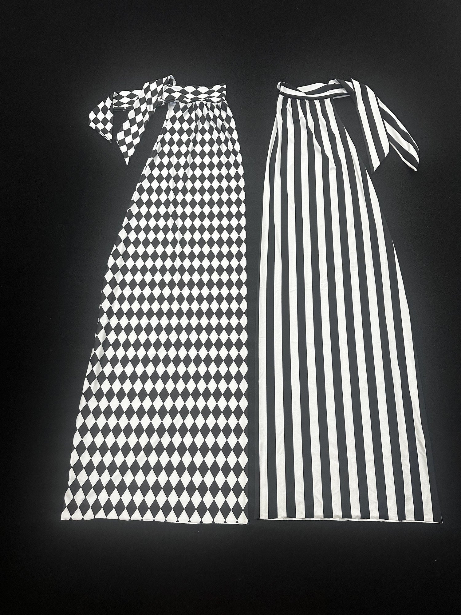 Split-Leg Stilt Covers in Stretch Spandex Fabric, Bold Harlequin & Stripe Graphic Pattern, Custom Fit High-Waist Palazzo Style, Full Length Performance Wear for Festivals & Events, Black and White