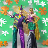 Embrace the delightful chaos of the circus with these bold, asymmetrical stilt covers. Designed for the performer who loves to make a statement, this piece clashes classic patterns for maximum visual impact. The high-quality stretch fabric ensures every giant stride is both comfortable and visually stunning.